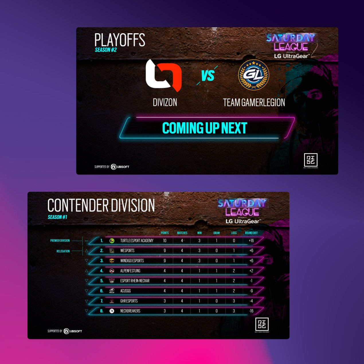 Corporate Identity und Social-Media-Kampagne für einen Gaming-Turnier rundum das Spiel „Tom Clancy's Rainbow Six Siege“. (erstellt in Zusammenarbeit mit nmf. Advertising Agency, Hamburg)